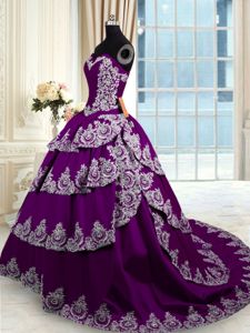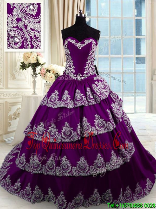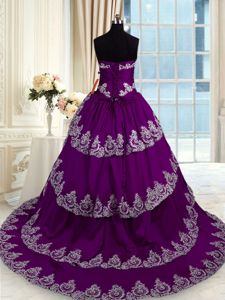 Shining Ruffled With Train Ball Gowns Sleeveless Purple Quinceanera Dress Court Train Lace Up