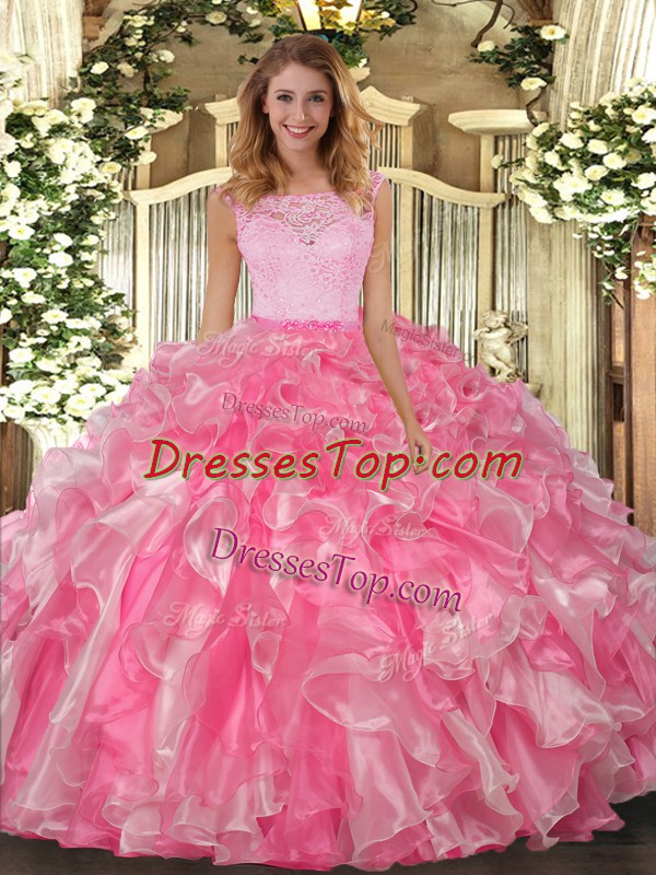Shining Sleeveless Clasp Handle Floor Length Lace and Ruffles Sweet 16 Dresses