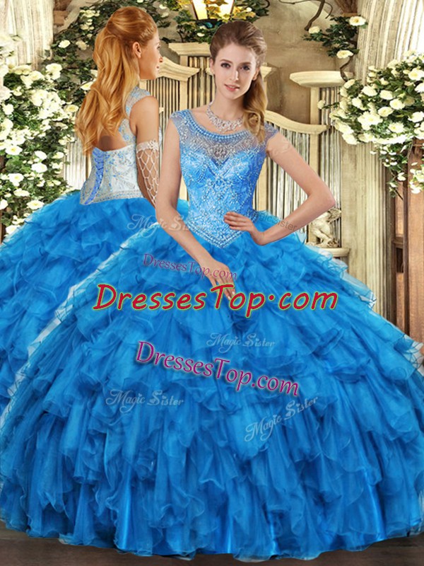 Shining Sleeveless Lace Up Floor Length Beading and Ruffles Quinceanera Dresses