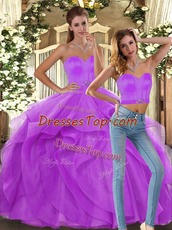 Shining Sweetheart Sleeveless Lace Up 15 Quinceanera Dress Lilac Tulle