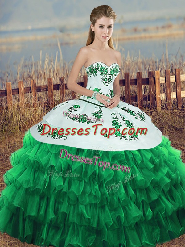 Shining Sweetheart Sleeveless Lace Up Sweet 16 Quinceanera Dress Green Organza