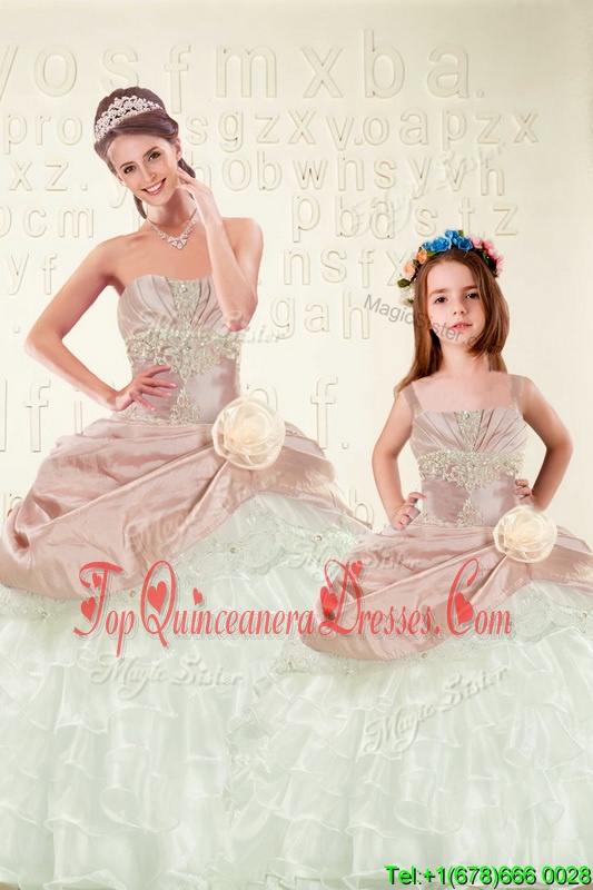 Shining Sweetheart Sleeveless Organza and Taffeta Quinceanera Gown Beading and Ruffled Layers and Hand Made Flower Lace Up