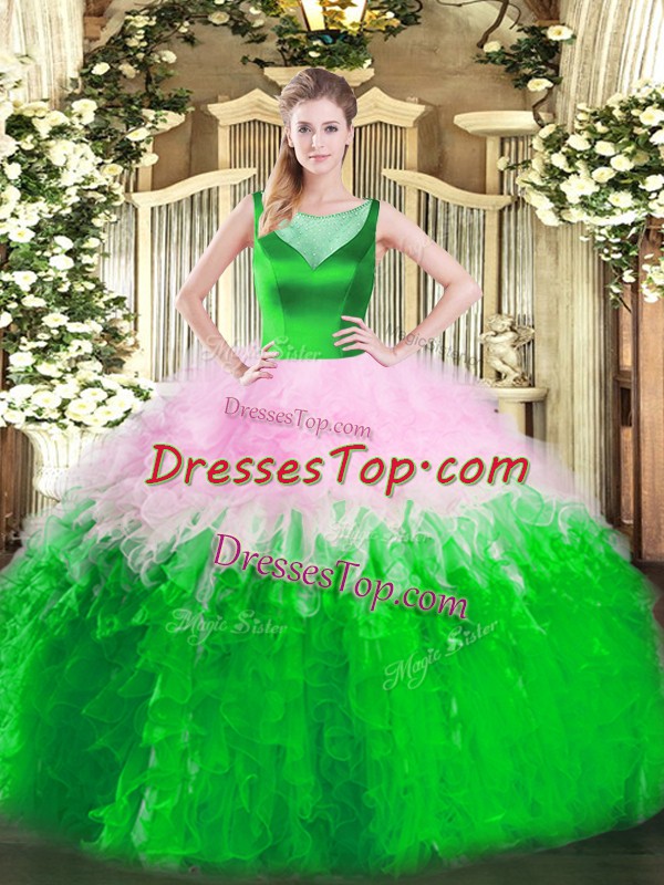 Shining Tulle Scoop Sleeveless Side Zipper Beading and Ruffles 15 Quinceanera Dress in Multi-color