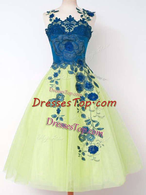 Shining Yellow Green Straps Neckline Appliques Dama Dress Sleeveless Zipper