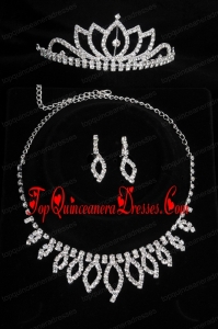Shinning Crystal Crown with Necklace and Earings Jewelry Set