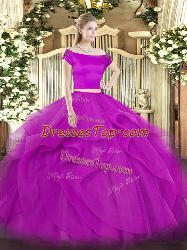 Short Sleeves Appliques and Ruffles Zipper Sweet 16 Dress