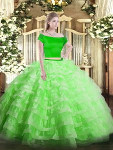 Short Sleeves Tulle Zipper Sweet 16 Dress for Military Ball and Sweet 16 and Quinceanera