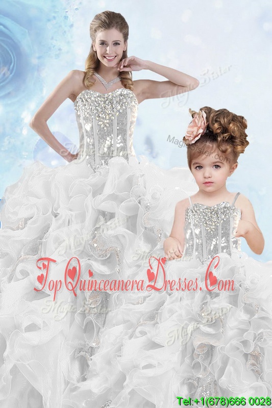 Silver Ball Gowns Beading and Ruffles and Sequins Ball Gown Prom Dress Lace Up Organza Sleeveless Floor Length