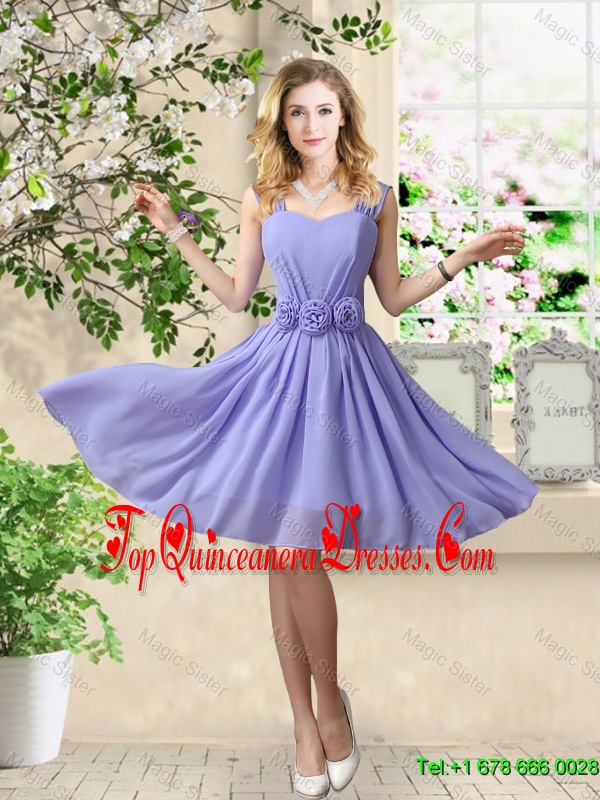Simple 2016 Straps Hand Made Flowers Dama Dresses
