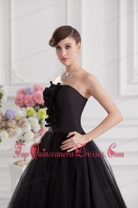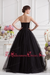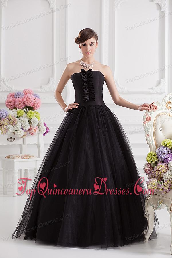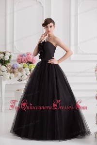 Simple A-line Strapless Tulle Black Quinceanera Dress with Ruffles
