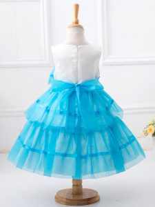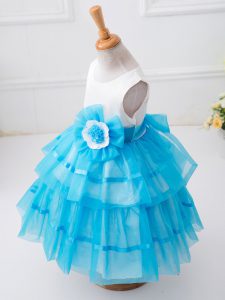 Simple Baby Blue Sleeveless Tulle Zipper Pageant Gowns For Girls for Wedding Party
