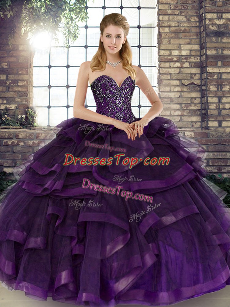 Simple Ball Gowns Sweet 16 Dresses Purple Sweetheart Tulle Sleeveless Floor Length Lace Up