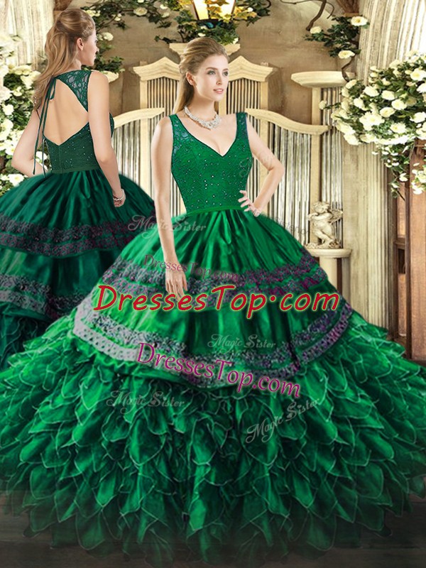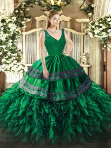 Simple Dark Green Sleeveless Organza Zipper Sweet 16 Quinceanera Dress for Sweet 16 and Quinceanera
