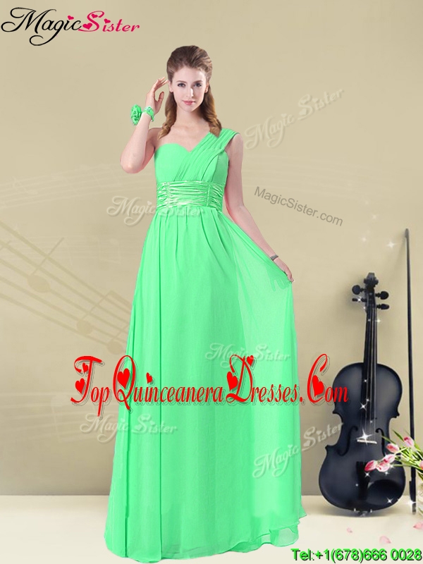 Simple Empire One Shoulder Gorgeous Dama Dresses with Ruching and Belt for 2016