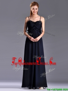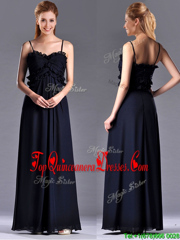 Simple Empire Straps Chiffon Ruching Navy Blue Dama Dress for Holiday