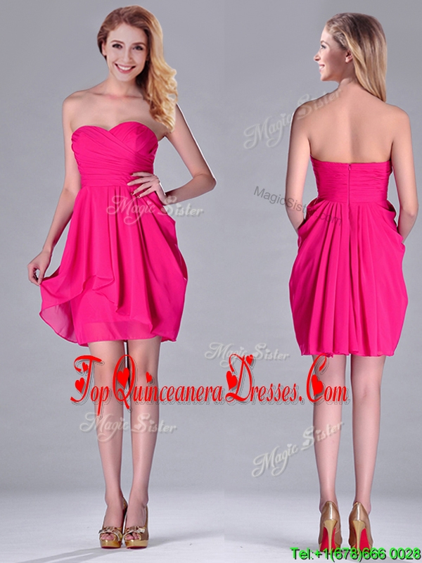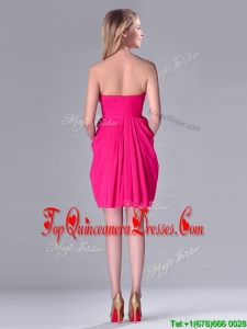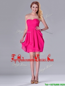 Simple Empire Sweetheart Chiffon Hot Pink Short Dama Dress for Homecoming