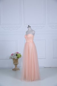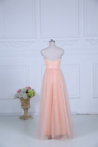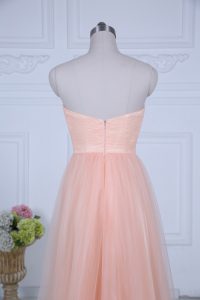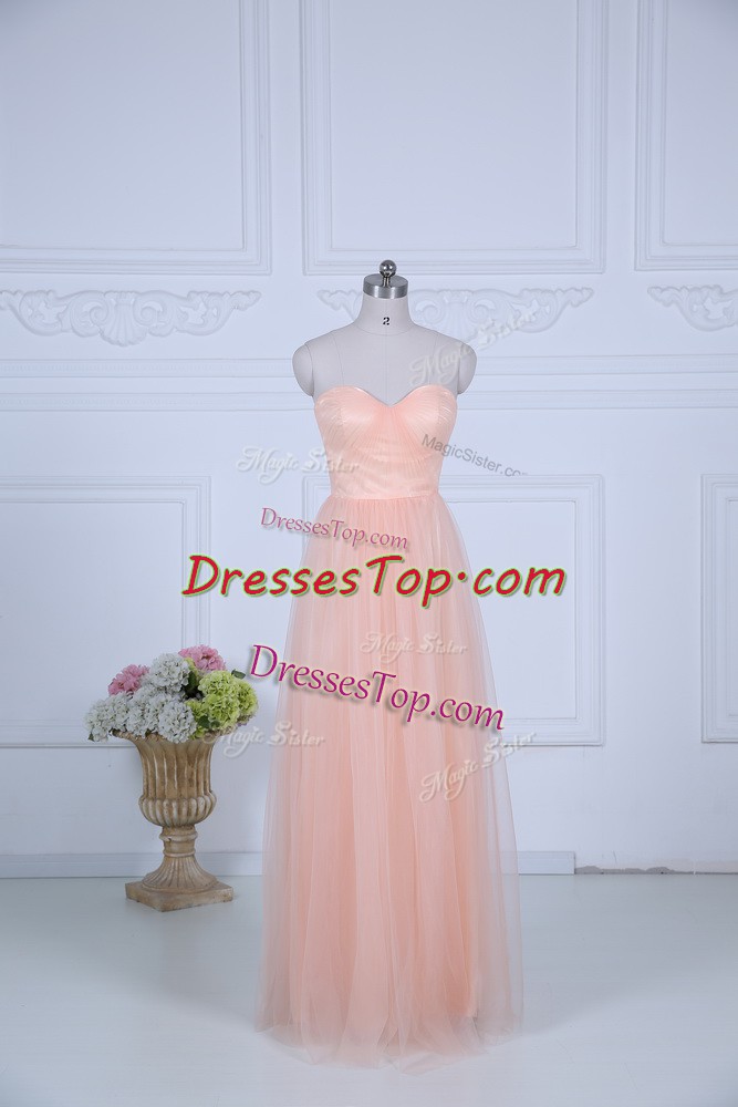 Simple Floor Length Zipper Dama Dress Peach for Wedding Party with Ruching