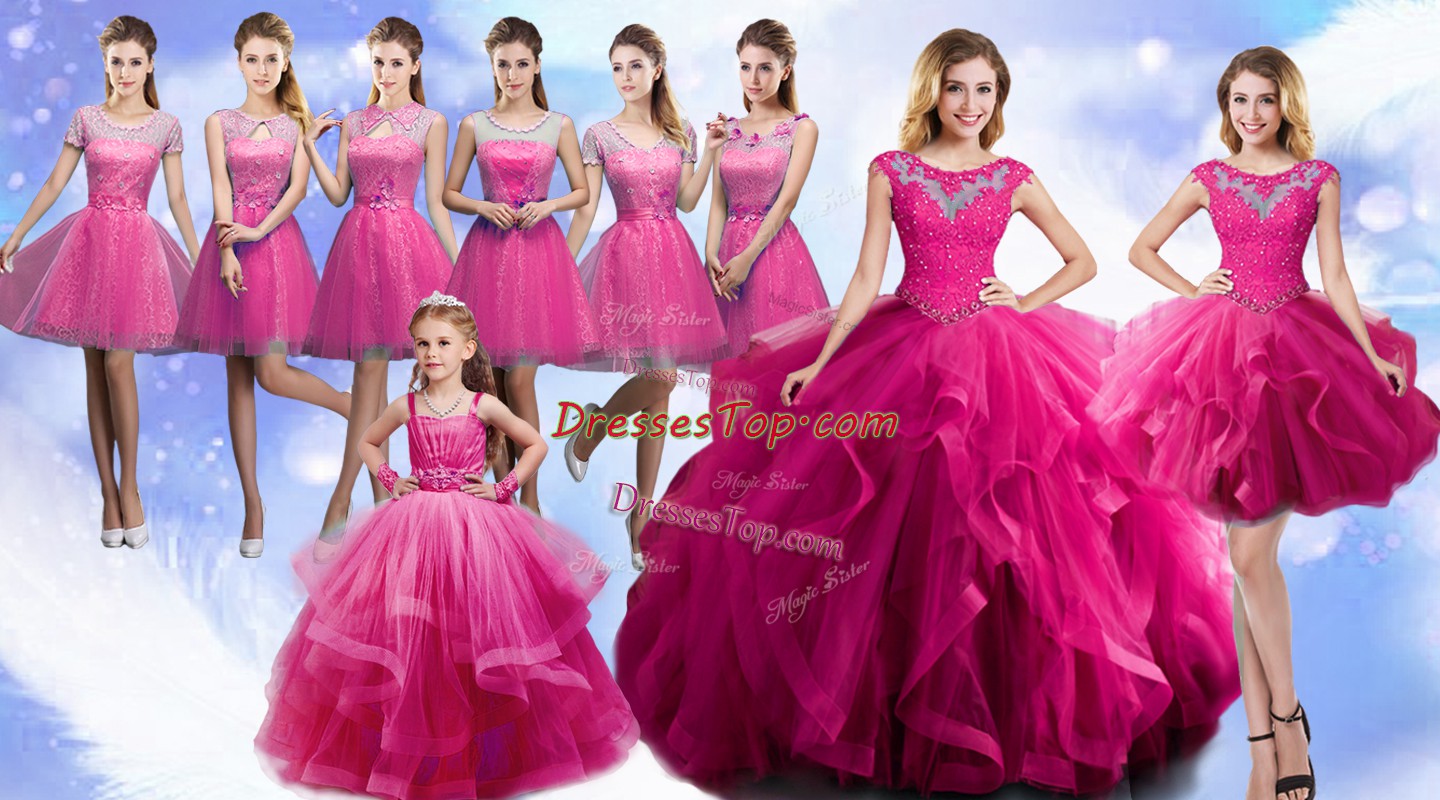 Simple Fuchsia Sweet 16 Quinceanera Dress Military Ball and Sweet 16 and Quinceanera with Beading and Ruffles Scoop Sleeveless Lace Up