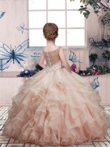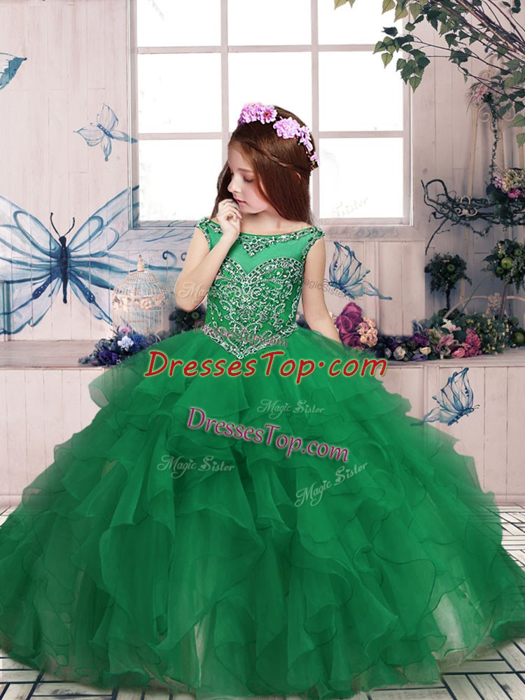 Simple Green Scoop Zipper Beading and Ruffles Kids Formal Wear Sleeveless