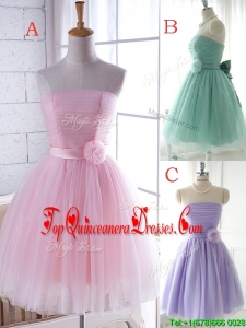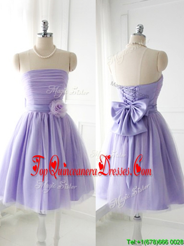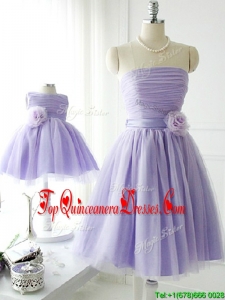 Simple Handcrafted Flower Tulle Lavender Damas Dress with Strapless