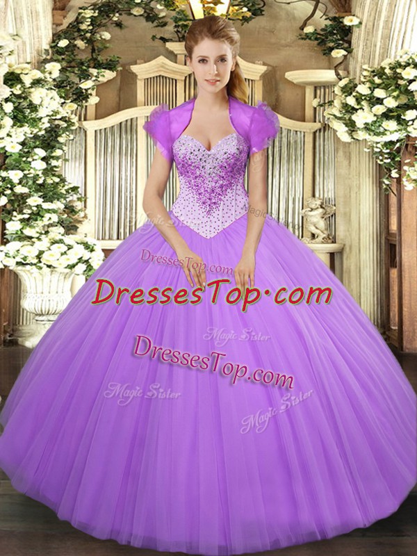 Simple Lavender Lace Up Sweetheart Beading 15 Quinceanera Dress Tulle Sleeveless