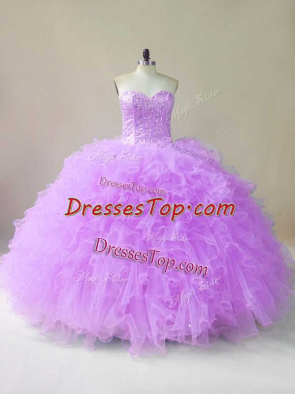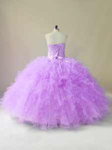 Simple Lilac Sweetheart Lace Up Beading and Ruffles Sweet 16 Dresses Sleeveless