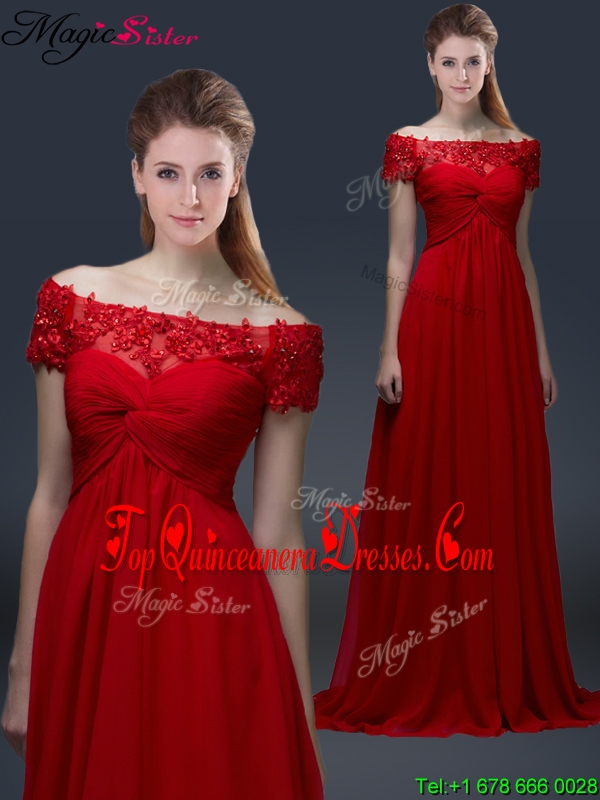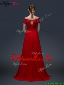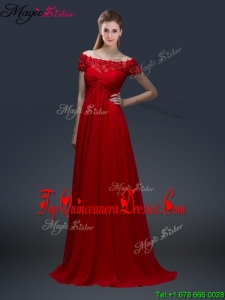 Simple Off the Shoulder Short Sleeves Red Dama Dresses with Appliques