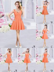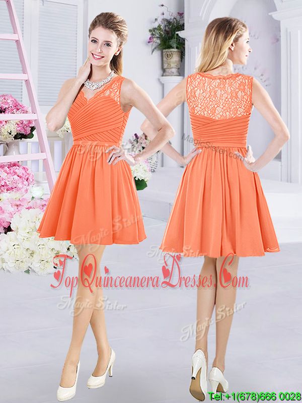 Simple Orange Chiffon Side Zipper Dama Dress for Quinceanera Sleeveless Mini Length Lace and Ruching