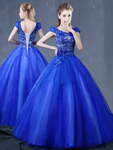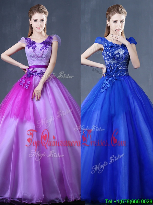 Simple Purple Ball Gowns Lace and Appliques Sweet 16 Quinceanera Dress Lace Up Organza Short Sleeves Floor Length