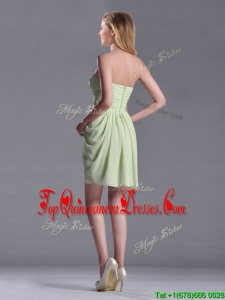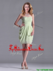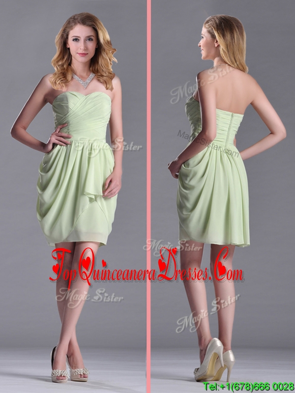 Simple Zipper Up Chiffon Yellow Green Dama Dress with Ruching
