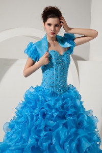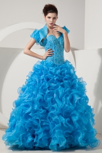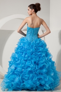 Sky Blue A-line Princess Prom Dress Sweetheart Organza