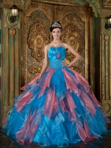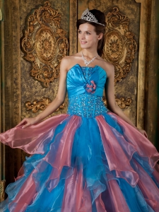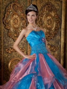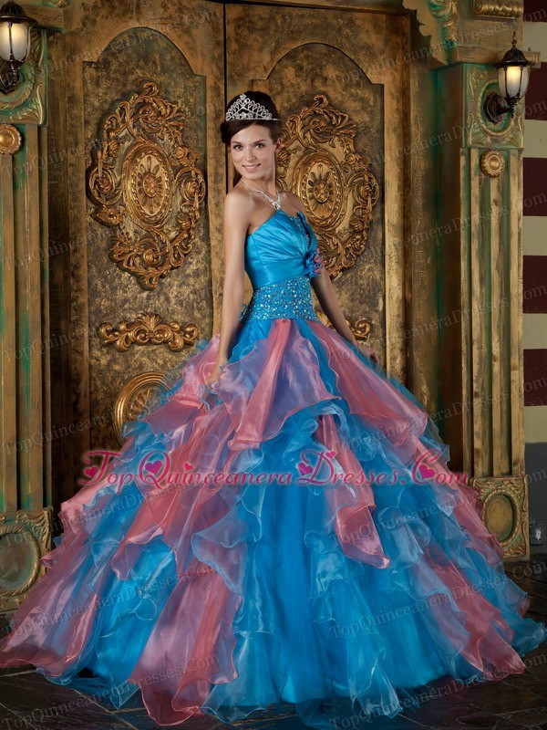Sky Blue and Watermelon Quinceanera Dress with Crystal