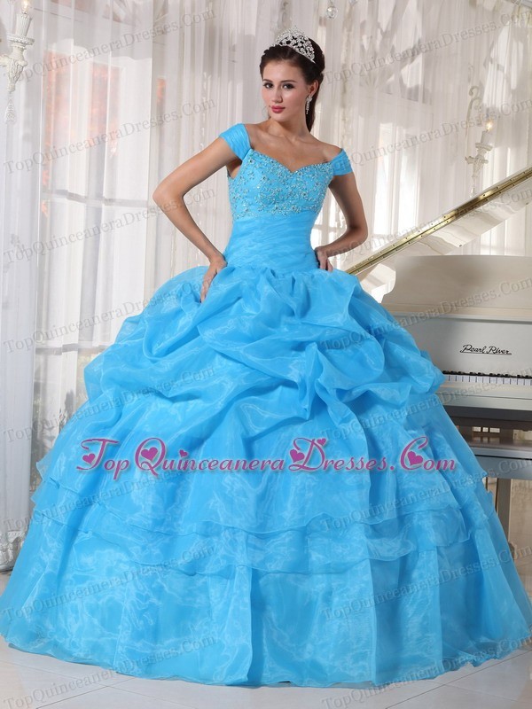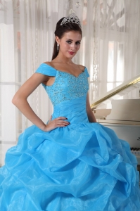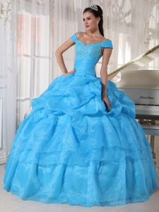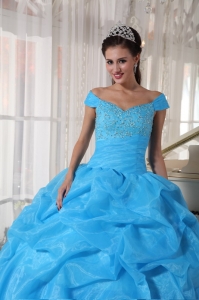 Sky Blue Quinceanera Dress Off The Shoulder Beading Pick-ups