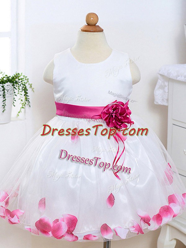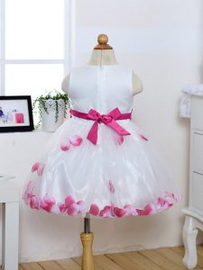 Sleeveless Appliques and Hand Made Flower Zipper Pageant Dress for Girls