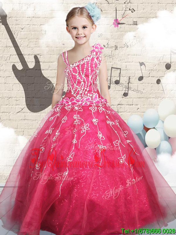 Sleeveless Appliques Lace Up Kids Pageant Dress