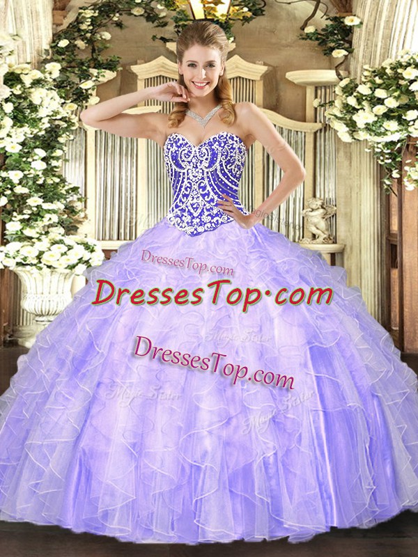 Sleeveless Asymmetrical Beading and Ruffles Lace Up 15th Birthday Dress with Lavender