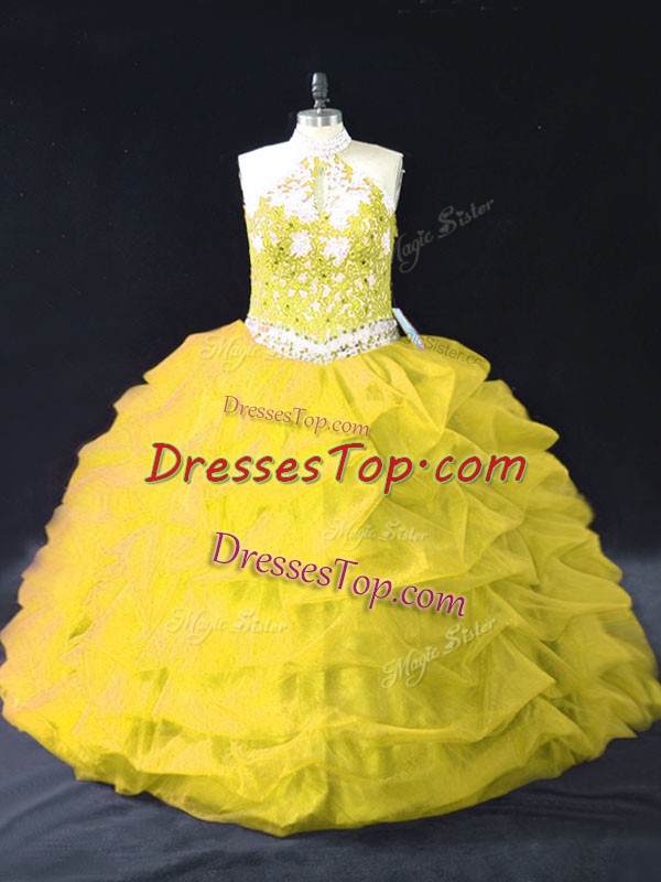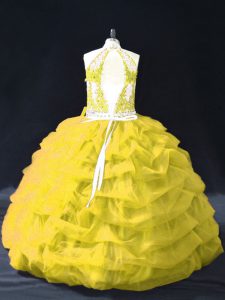 Sleeveless Backless Floor Length Appliques and Pick Ups Quinceanera Gown