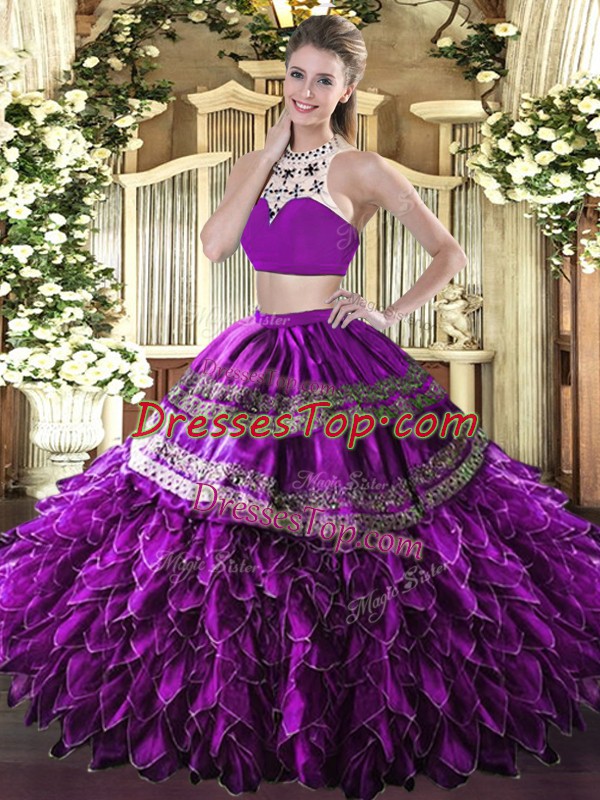 Sleeveless Backless Floor Length Beading and Ruffles Sweet 16 Quinceanera Dress
