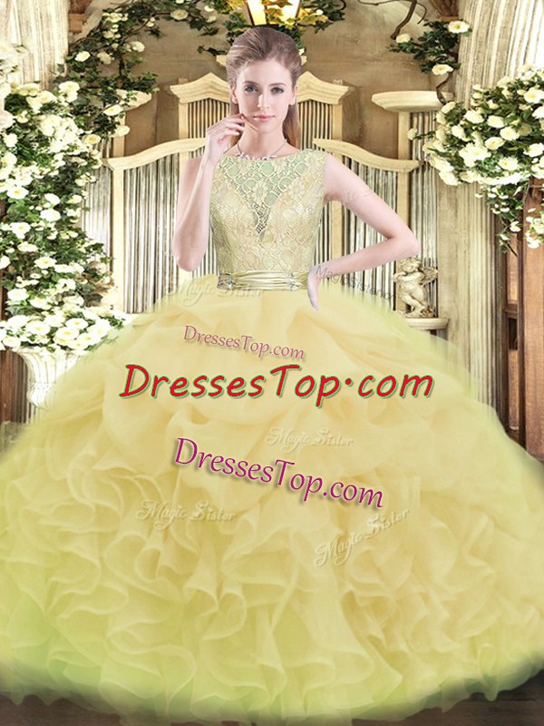 Sleeveless Backless Floor Length Lace and Ruffles Sweet 16 Quinceanera Dress
