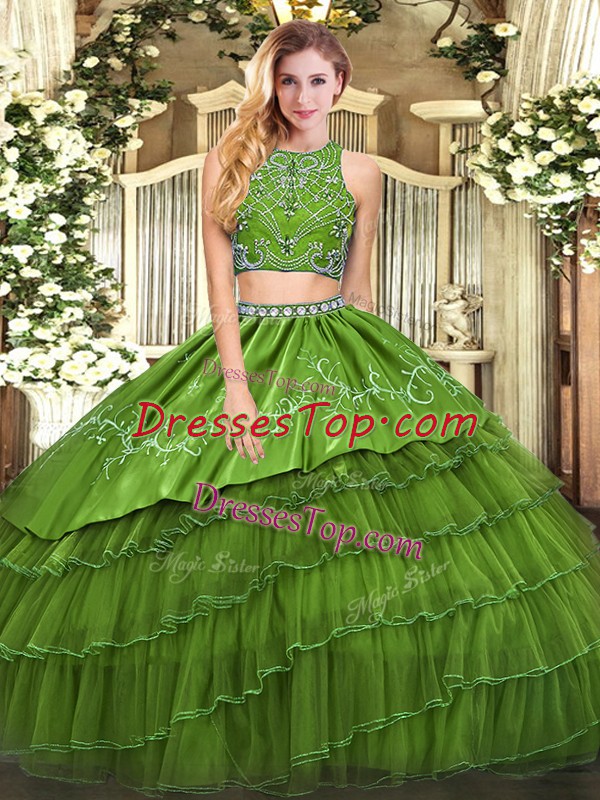 Sleeveless Beading and Embroidery and Ruffled Layers Zipper Quinceanera Dress