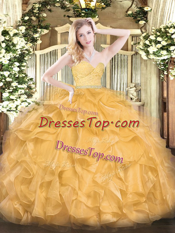Sleeveless Beading and Lace and Ruffles Zipper Quinceanera Gowns