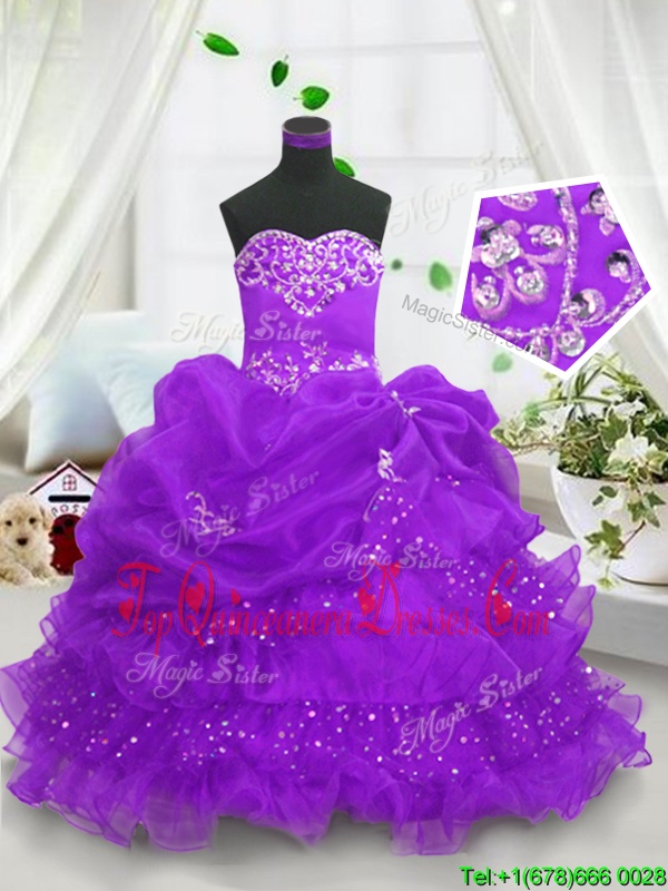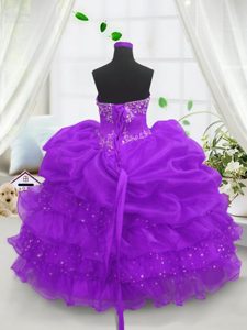 Sleeveless Beading and Ruffled Layers and Pick Ups Lace Up Kids Formal Wear