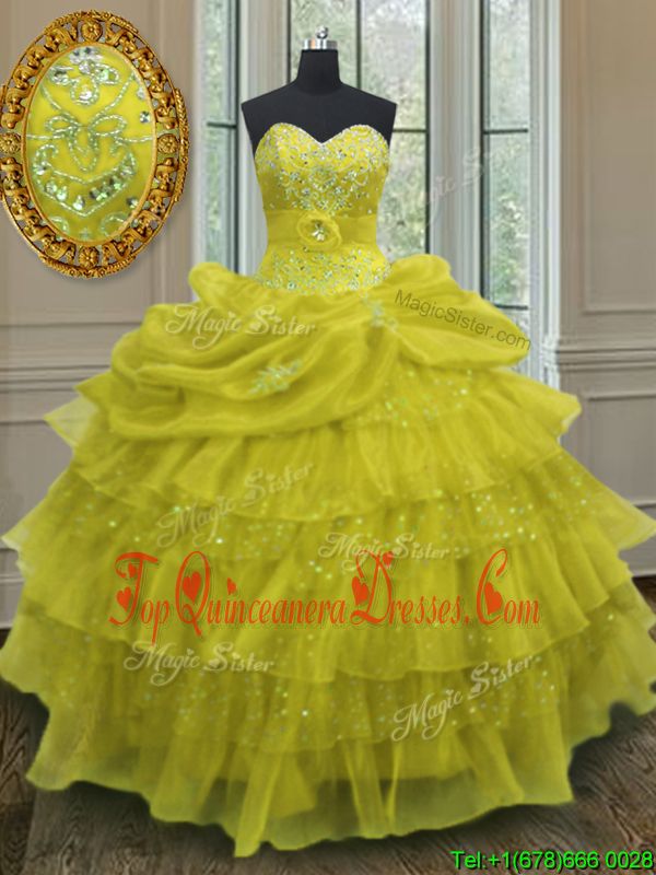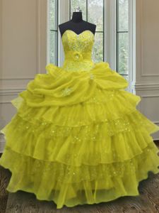 Sleeveless Beading and Ruffled Layers and Pick Ups Lace Up Vestidos de Quinceanera