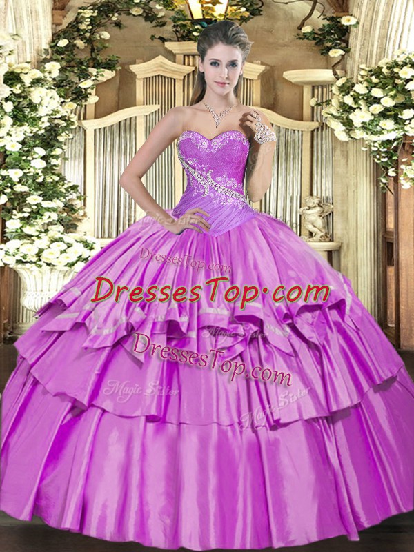 Sleeveless Beading and Ruffled Layers Lace Up 15 Quinceanera Dress