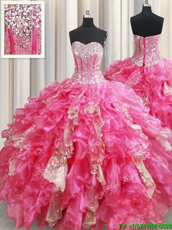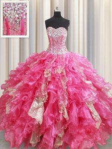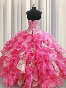 Sleeveless Beading and Ruffles and Sequins Lace Up Quinceanera Dress