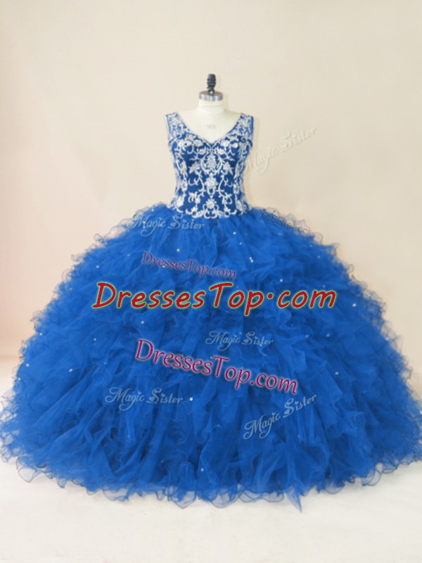 Sleeveless Beading and Ruffles Backless Sweet 16 Dress
