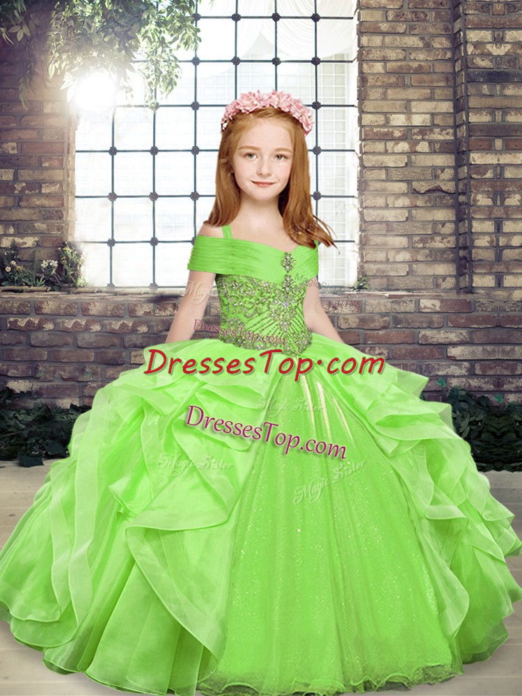 Sleeveless Beading and Ruffles Floor Length Kids Formal Wear