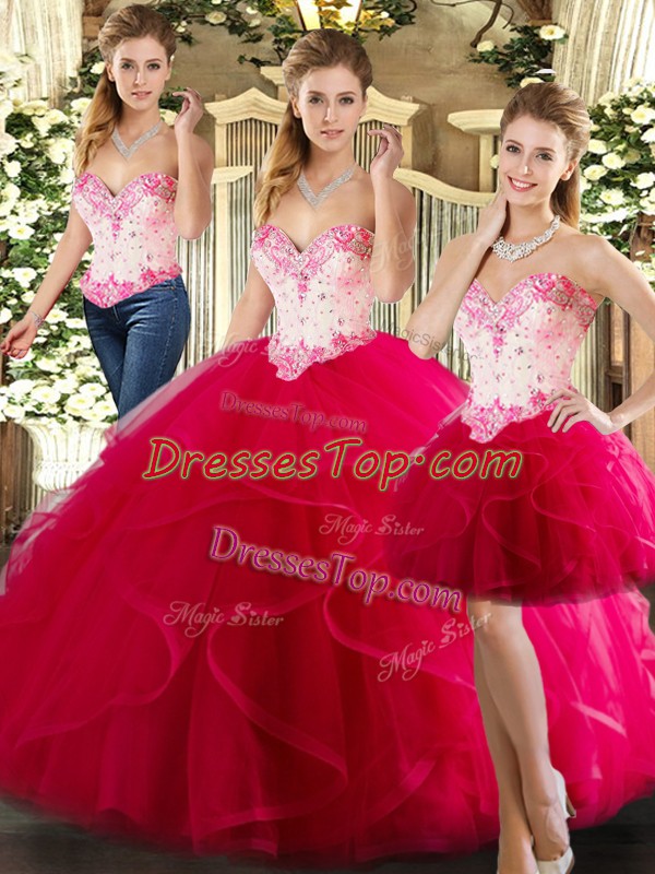 Sleeveless Beading and Ruffles Lace Up 15 Quinceanera Dress
