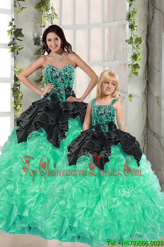 Sleeveless Beading and Ruffles Lace Up 15th Birthday Dress