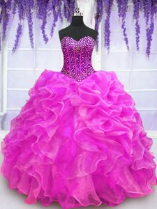 Sleeveless Beading and Ruffles Lace Up Court Dresses for Sweet 16